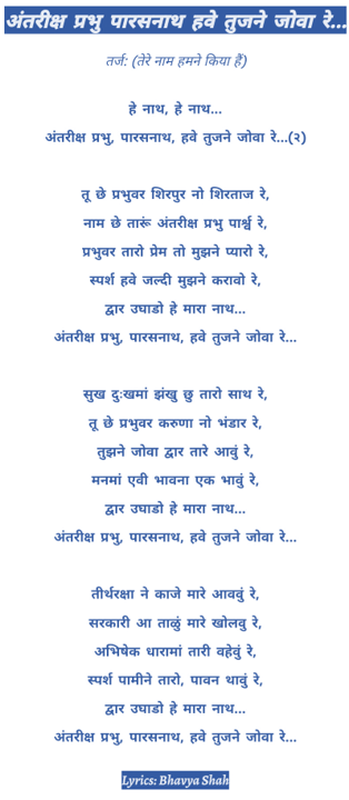 Antariksh prabhu Parasnath have tujne jova re lyrics